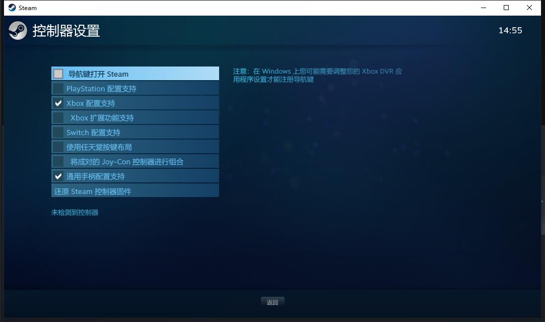 如果按上述操作不能正常使用的话,可以试试打开steam大屏幕模式查看一下库内添加的游戏有没有控制器设置