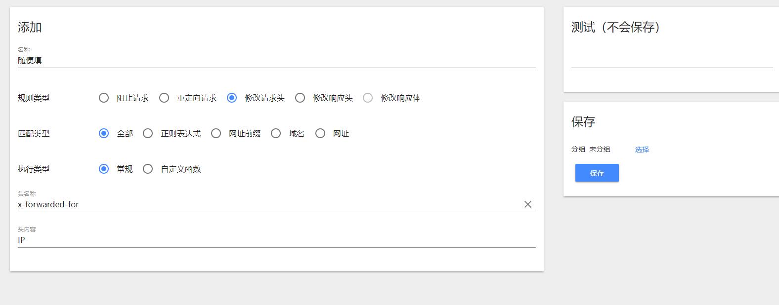名称随便填,规则类型选择修改请求头,其余两项不用动。下面的头名称填x-forwarded-for(横杆不可少)。头内容选择有Cloud Gaming beta服务的地区或者国家,比如美国或者日本韩国这些。在网上随便搜一些美国IP(比如亚马逊服务器等各大公司的ip)填入。然后保存。