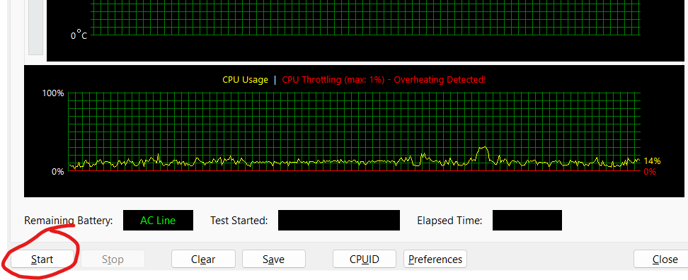 没有问题的话就可以开始了,在AIDA64的系统稳定性测试窗口中最底下找到start开始烤机。